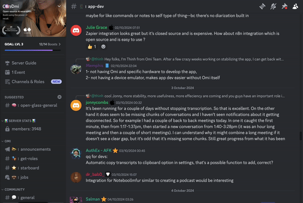Build faster and better with 3900+ community members on Omi Discord